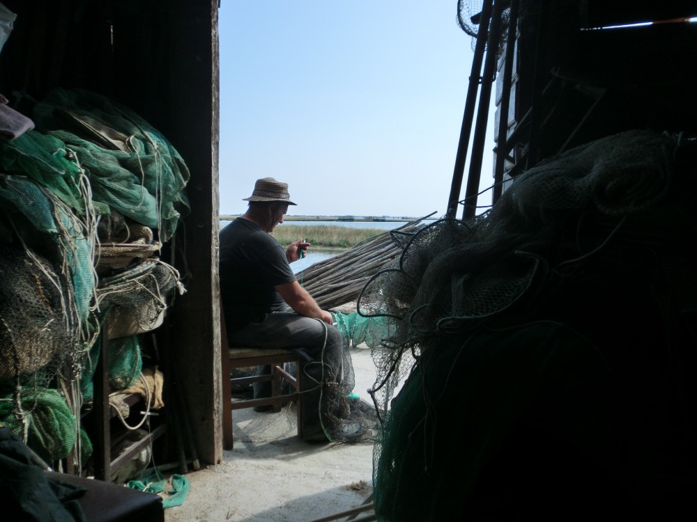 Der Bildband begleitet einige Fischer über ein Jahr lang - mit ihren Familien in ihrem oft absurd erscheinenden Alltag in einer Welt aus Wasser. Giorgio ist die Hauptfigur. Er pendelt zwischen seiner schäbigen Fischerhütte irgendwo in der Lagune und seiner Familie in Cavallino.